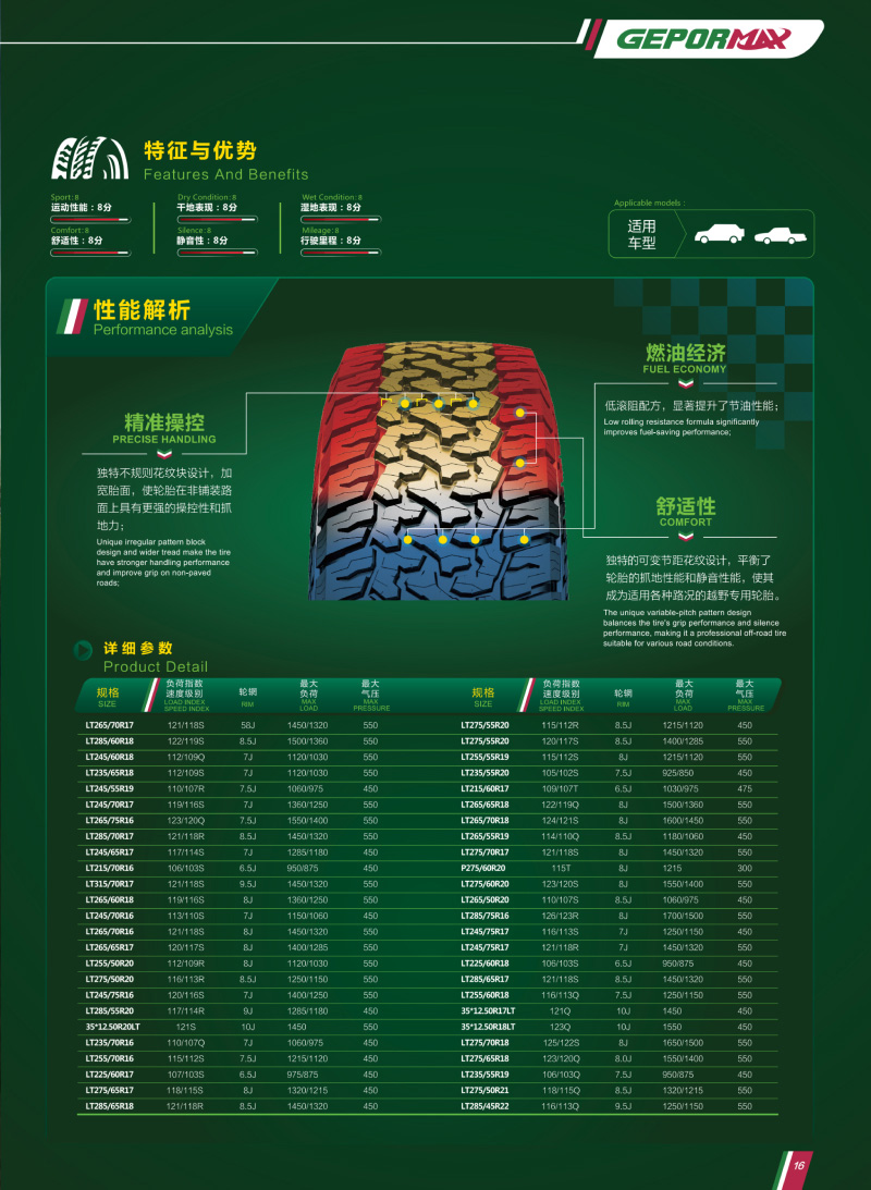 獨特花紋設(shè)計,在非鋪裝路面上具有超強(qiáng)的耐用性和抓地力,是一款適用各種路況的越野專用輪胎。